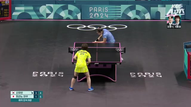 신유빈 선수의 서비스가 일정하지 않았던 순간이 있지만, 다시 랠리를 이어갔죠.